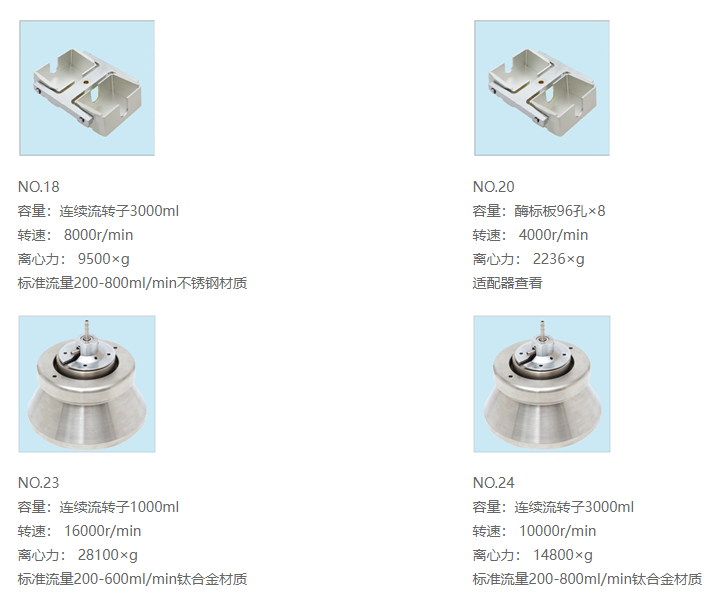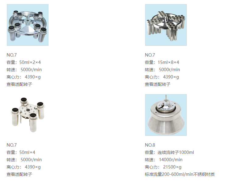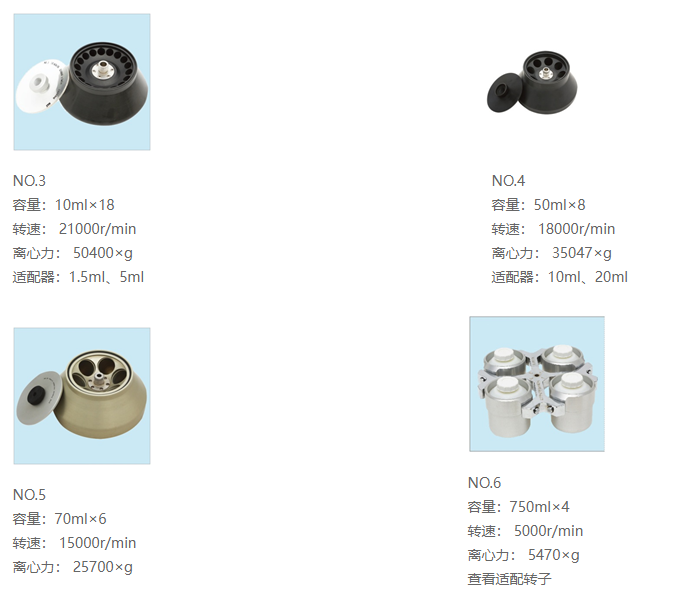 转子参数 容量: 50ml×20 转速: 5000r/min 离心力: 4390×g